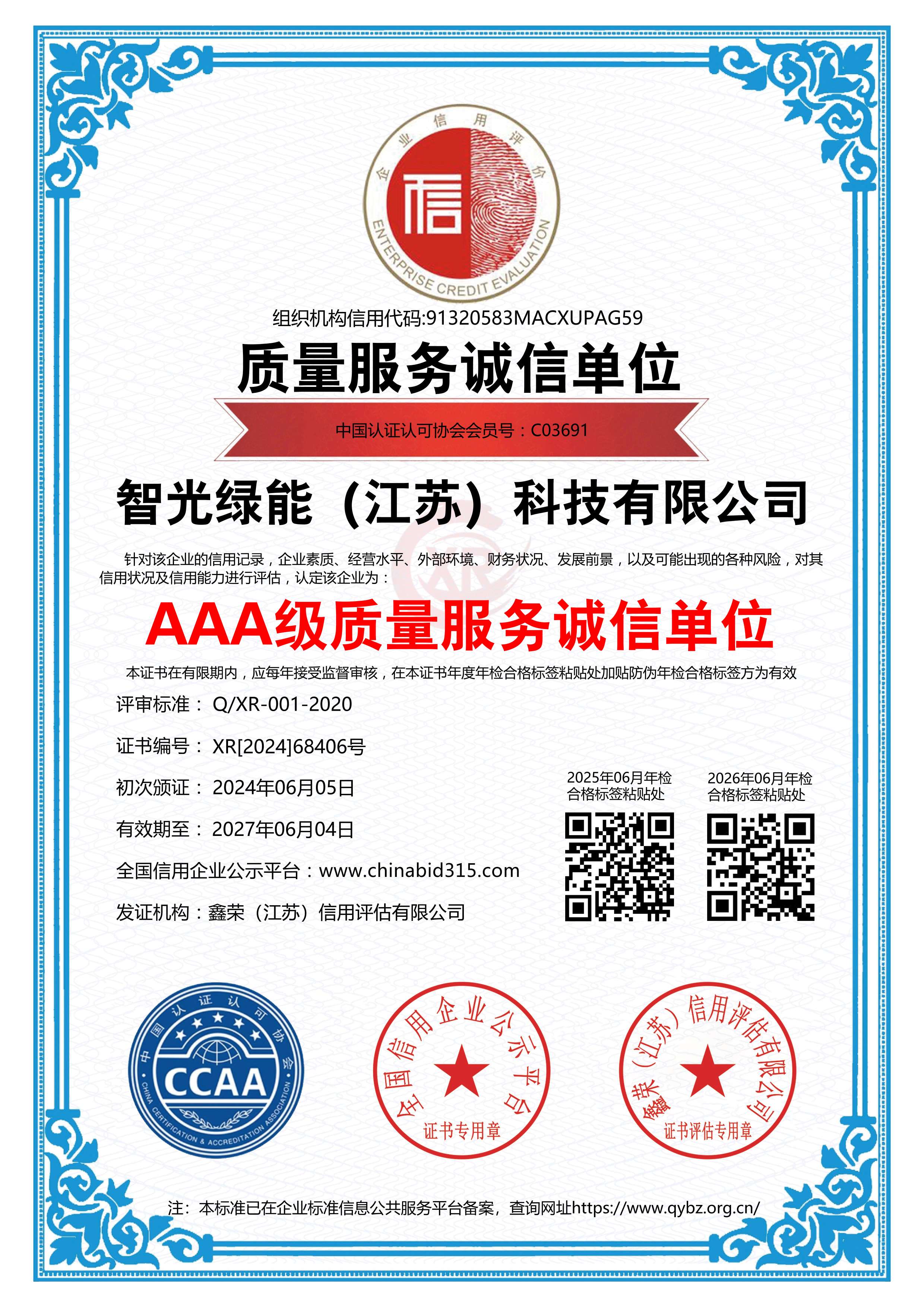 AAA级重质量守信用企业